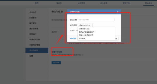 同時,為了確保企業成員身份信息的安全和企業賬戶的安全,還可以設置成員進入企業二次驗證,并且可以自定義認證的頻率。
