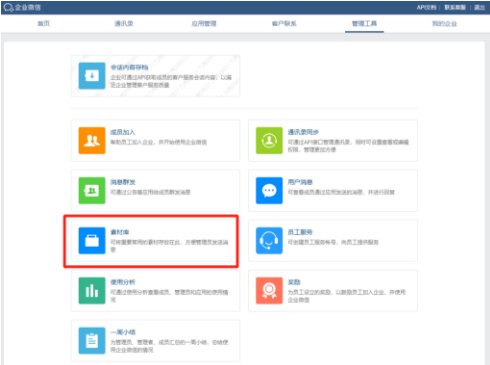 其實企業微信素材庫就在企微管理后臺,需管理員進入【管理工具】頁面才能看到。