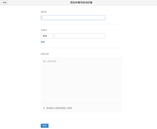 創建規則時可以對規則進行命名,能選擇回復文字、圖片、視頻、小程序、鏈接等形式的內容。