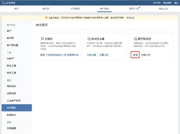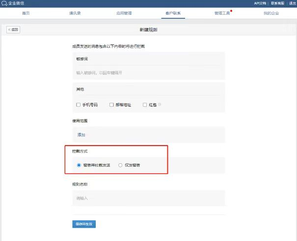企業能通過企業微信后臺設置,對敏感詞進行限制發送,禁止員工私拉客戶的行為。
