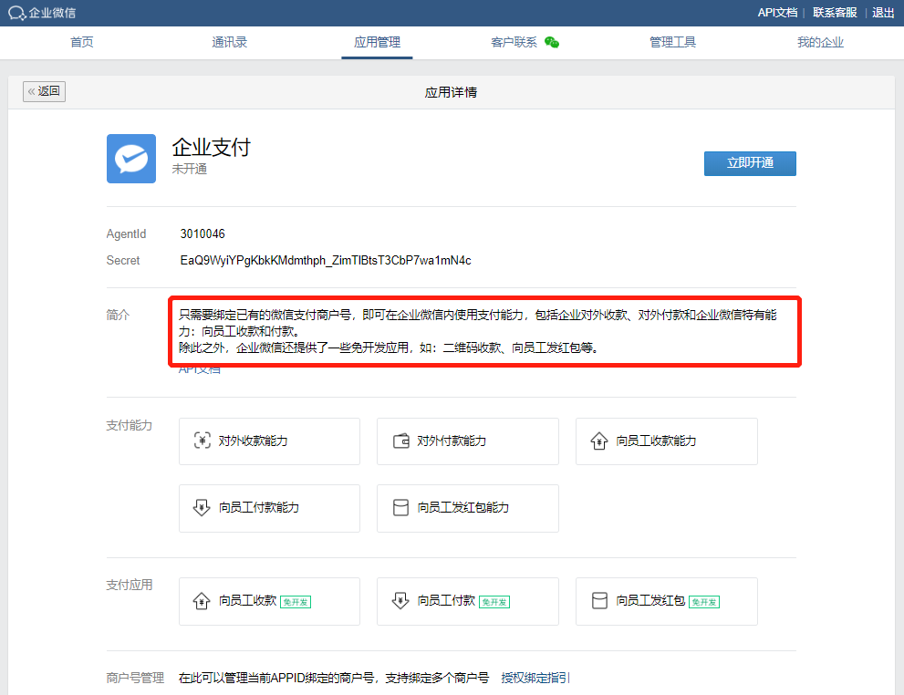 企業(yè)不能向客戶(hù)進(jìn)行轉(zhuǎn)賬,但是客戶(hù)可以對(duì)企業(yè)進(jìn)行付款。企業(yè)微信通過(guò)認(rèn)證后并且綁定商家賬戶(hù)后,可以開(kāi)通企業(yè)微信支付功能,開(kāi)通之后客戶(hù)可以向企業(yè)進(jìn)行付款了。