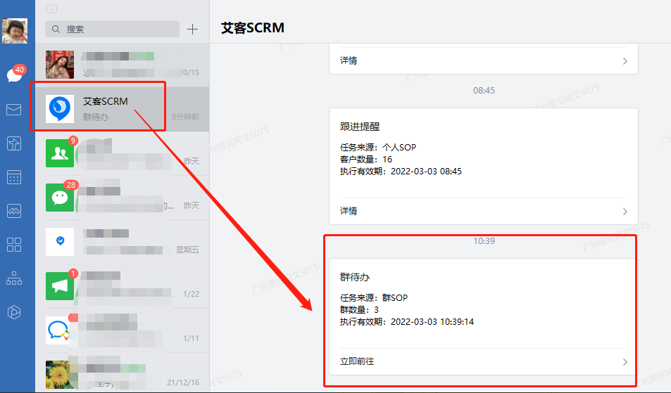 群SOP建立之后,到時間任務會下發到對應的執行人員手機上,各個群主收到提醒后,可以先查看需要推送的內容詳情,再一鍵發送至各個社群內。