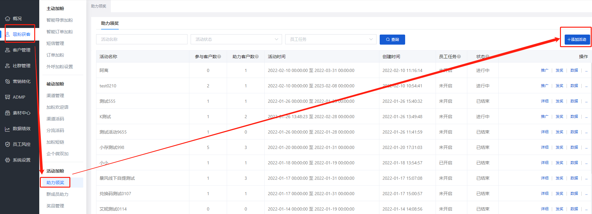 艾客SCRM的【裂變任務】功能,具體的操作是商家可以設置好友/群成員助力活動,并通過各個渠道(歡迎語、側邊欄快捷回復、客戶群發、客戶群群發、公眾號群發等),分發給好友或其他潛在用戶進行拉新。