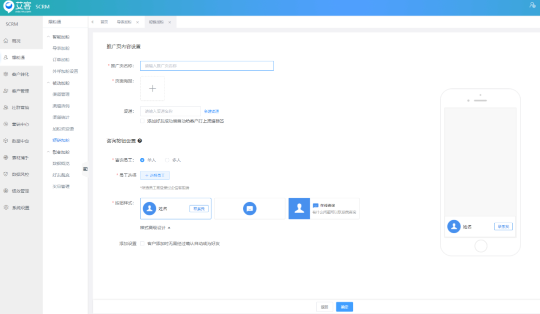 這時可以試試艾客scrm的短鏈加粉功能,該短鏈可用于短信、今日頭條、抖音等平臺進行短鏈投放,用戶點擊短鏈就可以直接添加企業(yè)微信員工,輕松將外部渠道流量轉(zhuǎn)化為私域流量。