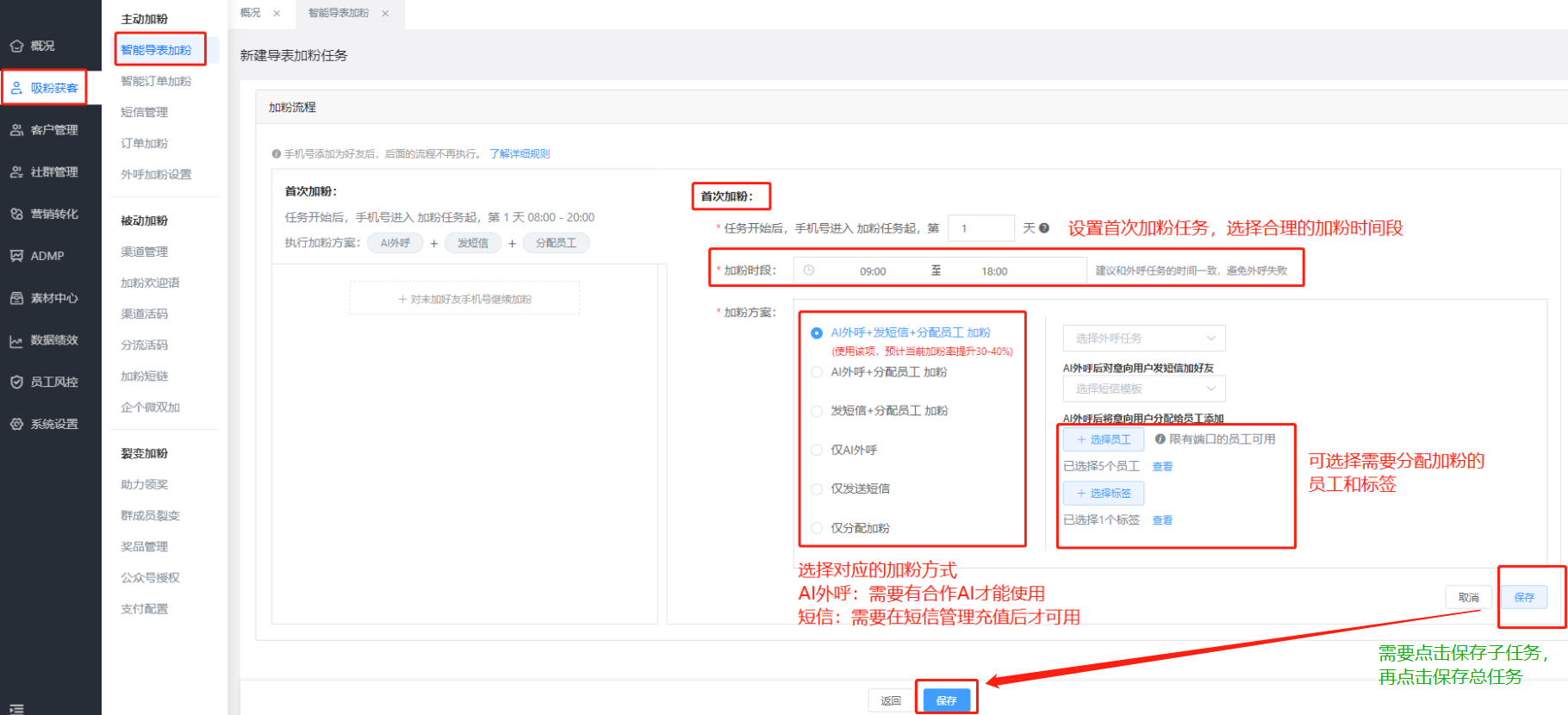 除此之外,還可以使用艾客的批量加好友功能,也稱為智能導表加粉功能,企業批量導入客戶手機號進艾客后臺,然后分配給不同員工進行加粉任務,各個員工可以設置加粉SOP流程,導入客戶手機第一次加粉失敗后,間隔多天后執行第二次加粉任務。大大提升加粉效率。